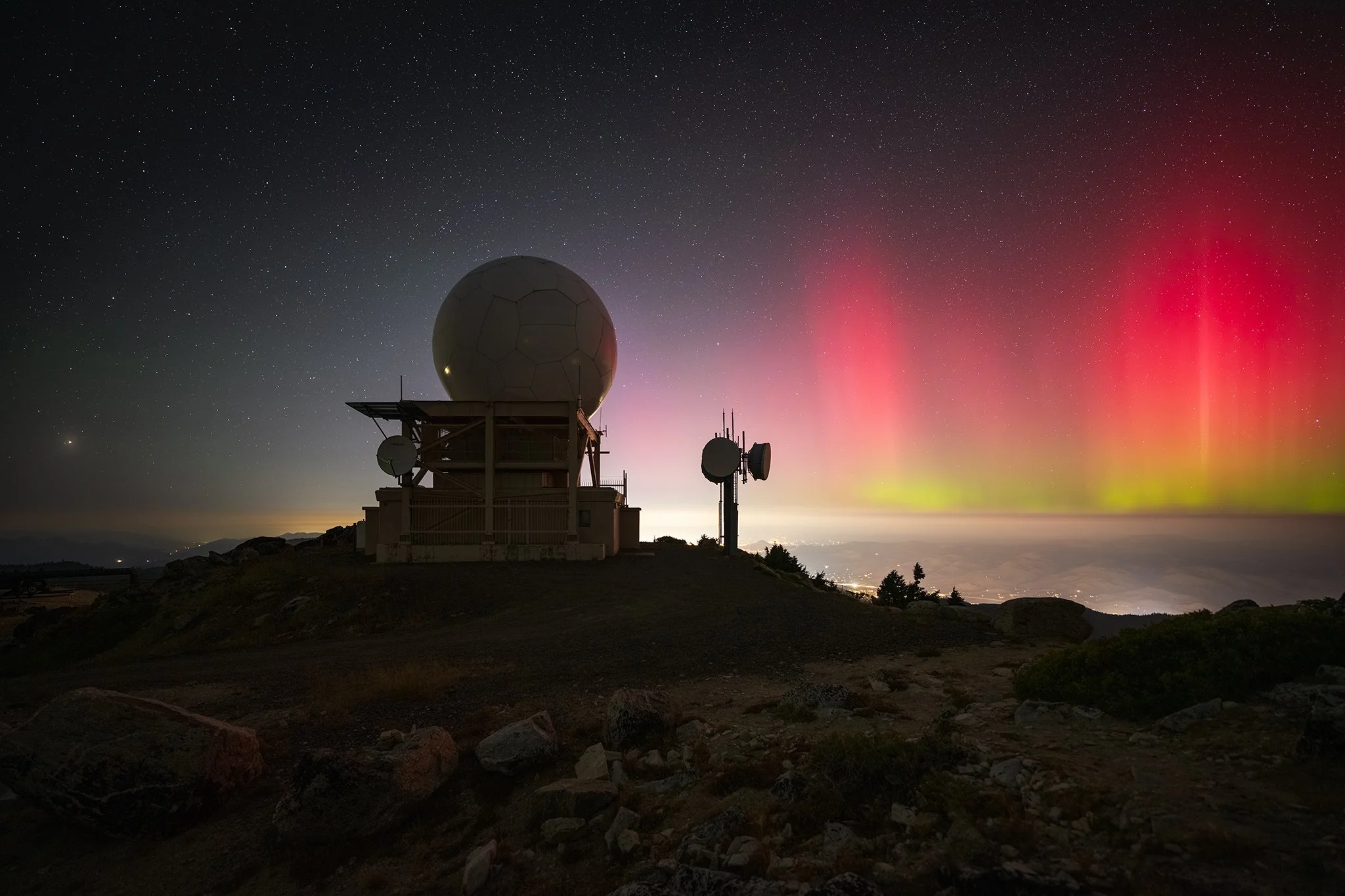 Northern Lights dance above an inversion layer of wildfire smoke and light haze from the Rogue Valley below.