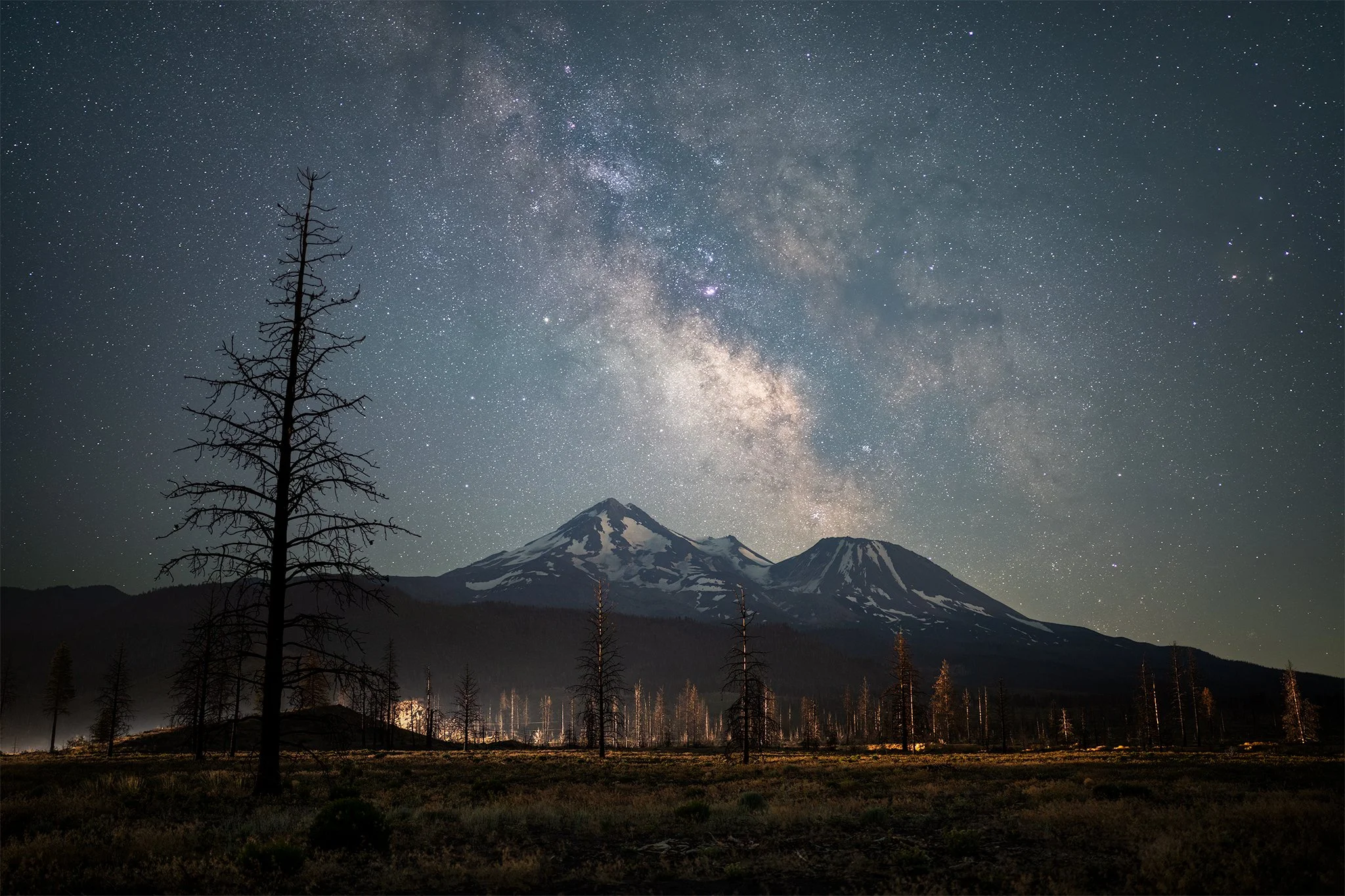 The broader trend is not unique to Siskiyou County. One of the annual workshops I teach focuses specifically on capturing the Milky Way over Mt. Shasta, a subject I've devoted many nights to over the years. Locations I photographed from just a few years ago are measurably brighter now. Some of them, frankly, are no longer usable for serious night photography at all. I find myself driving farther, scouting more carefully, and adjusting my compositions to work around light infiltration that simply weren't there before.